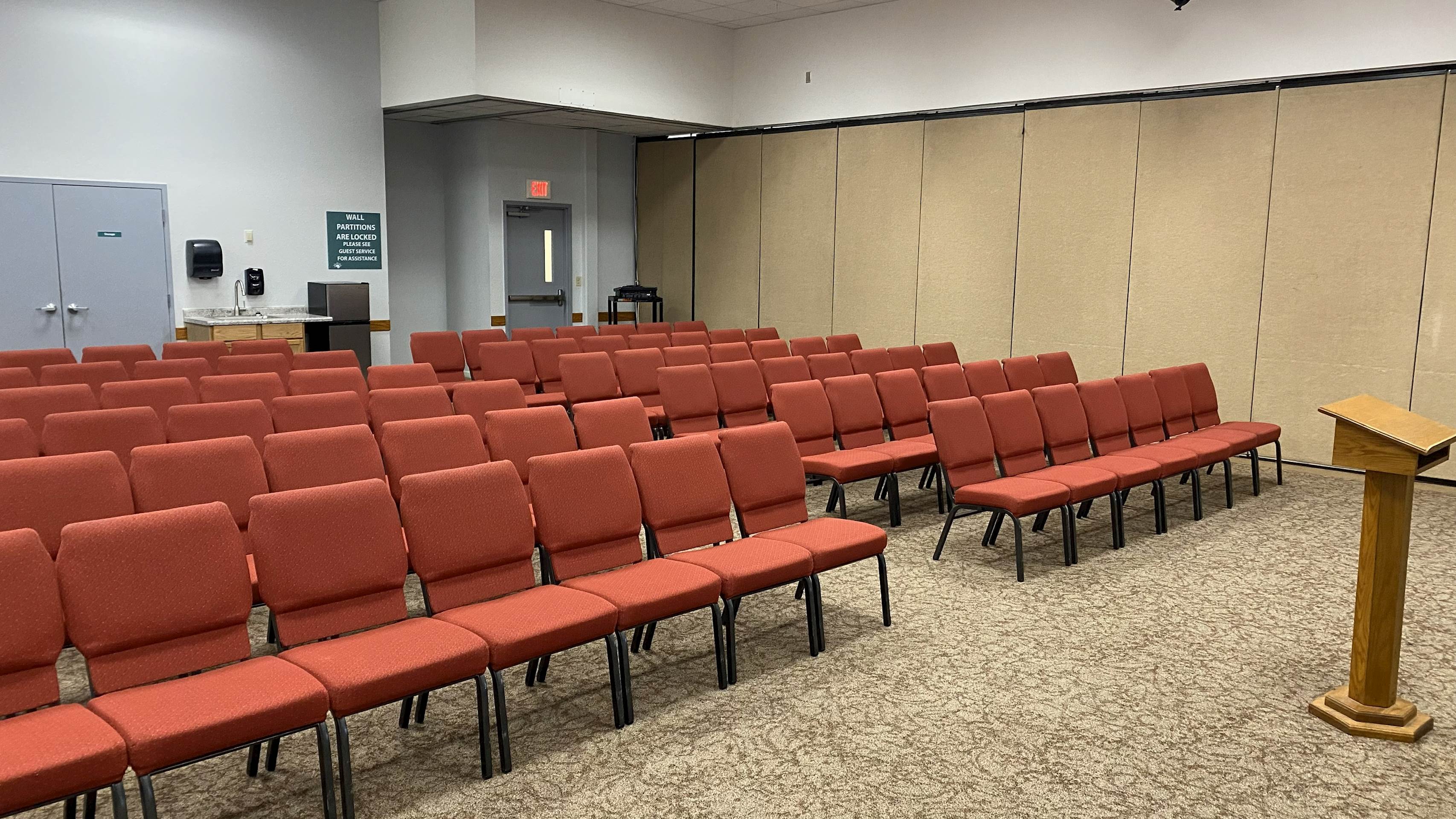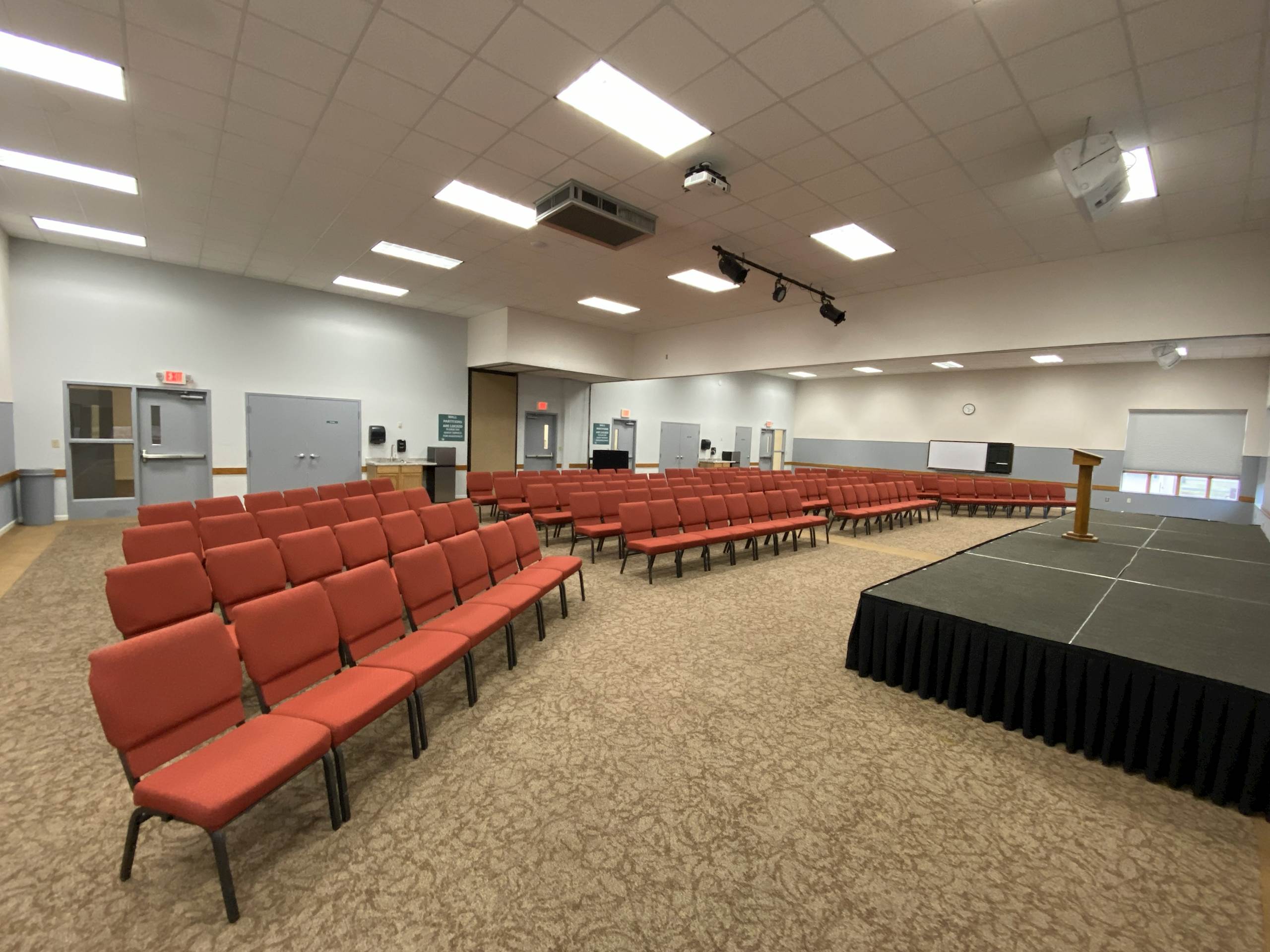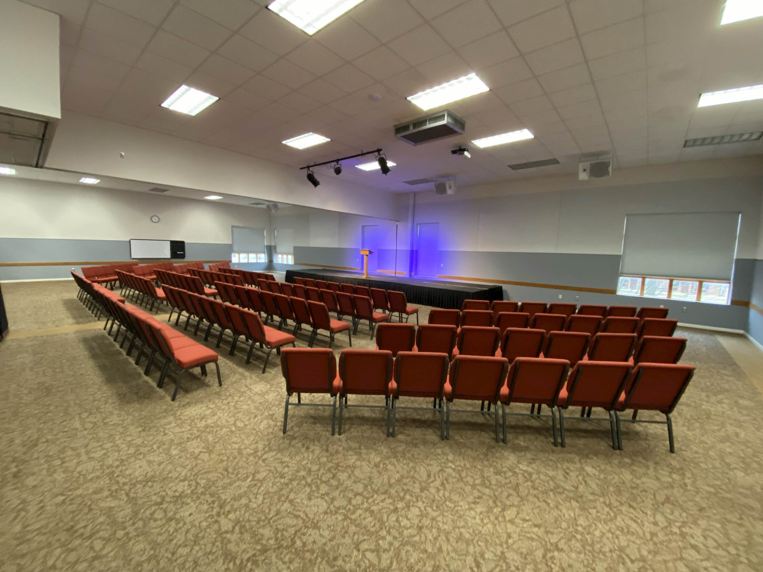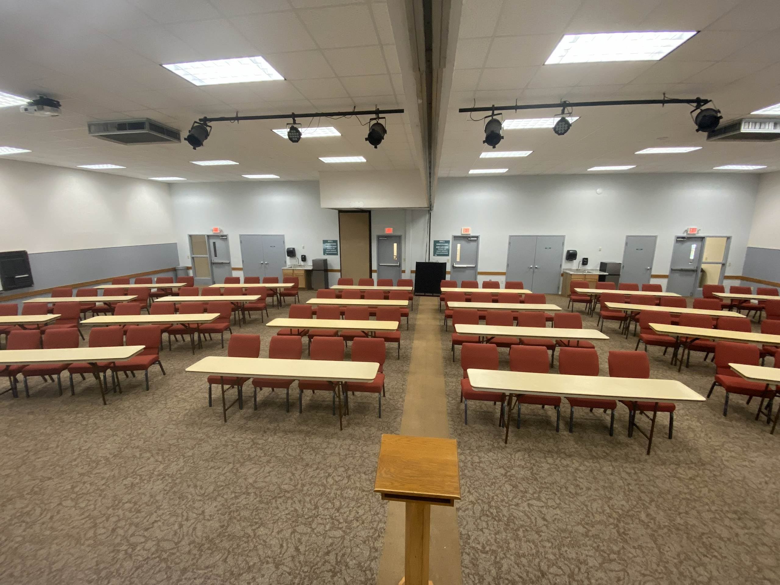 AC 207 is located upstairs in the newest addition to the Activities Center. This well-rounded meeting space offers groups a ton of flexibility and can be configured to meet a variety of needs. Wall sections can divide the room into four smaller rooms with a hallway down the middle, or a combination of two smaller rooms and one larger room. AC 207 is equipped with a sound system, stage lights, two projectors and screens, and a lot of opportunity for creativity.