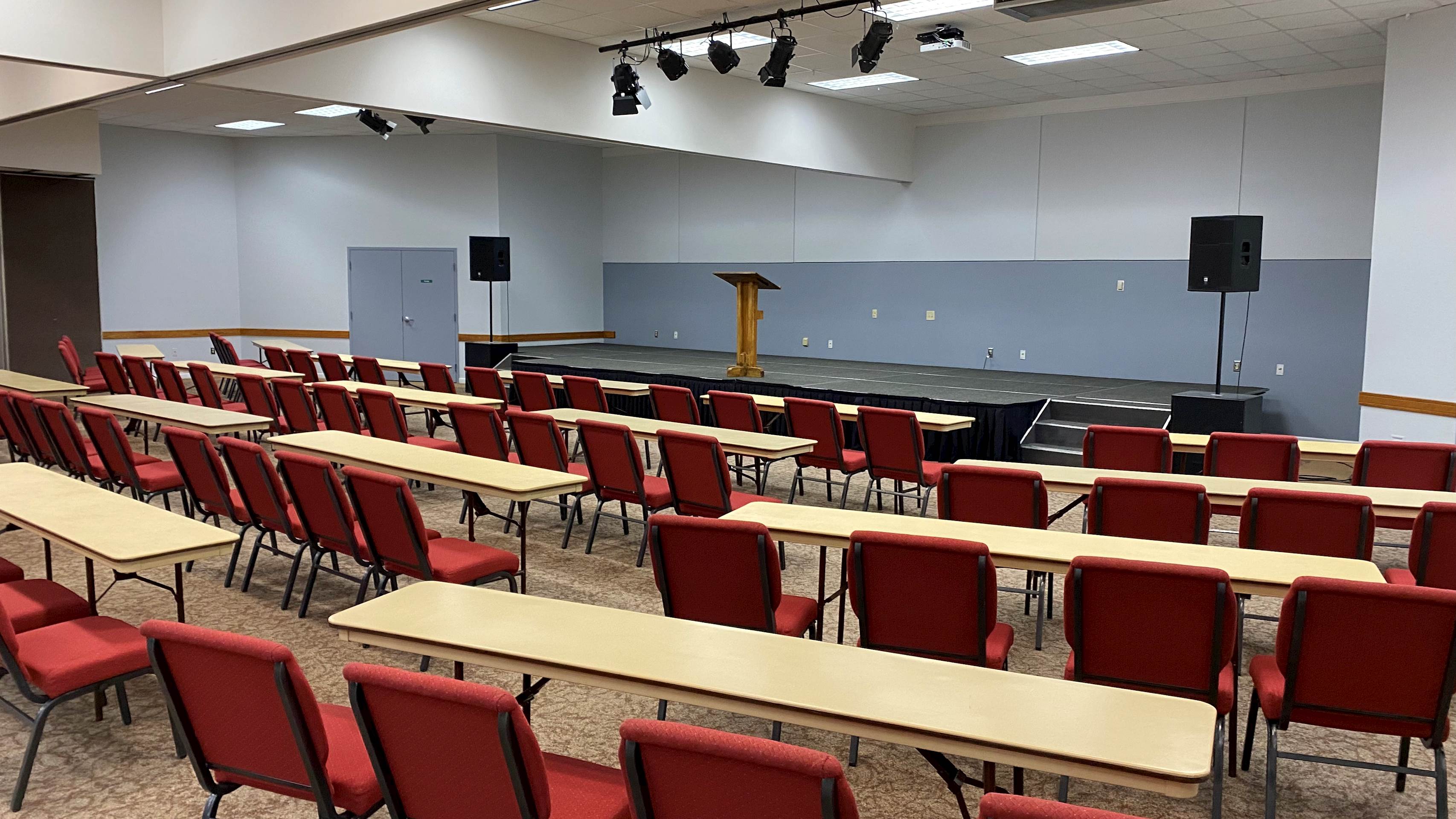 Seating Styles: Rows (320) Banquet (288) Rounds (208) Classroom (144)