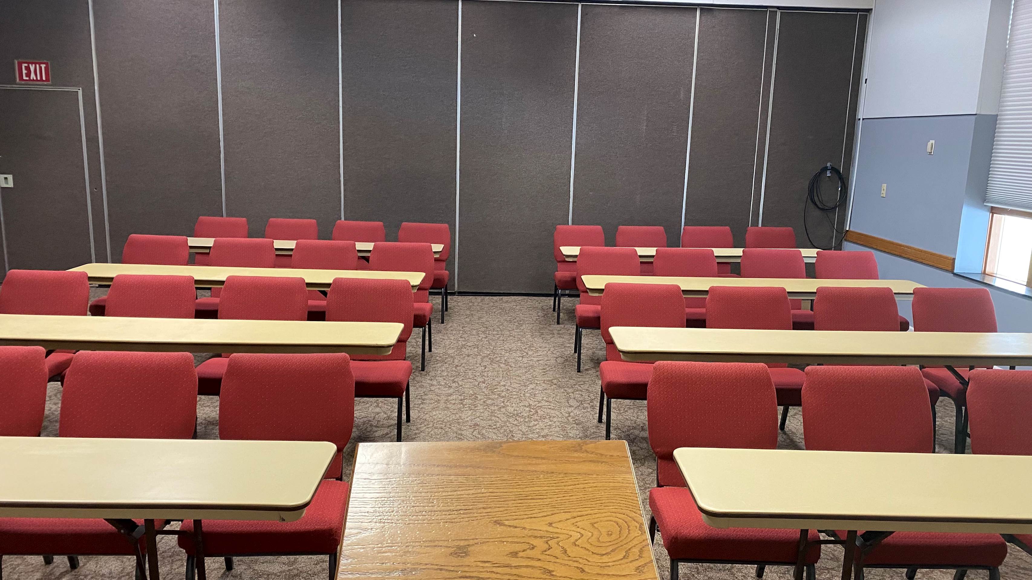 AC 201, 202, and 203 are solid meeting spaces with a ton of flexibility! These three rooms can be configured to meet a variety of needs. Wall sections can be moved to offer: all three rooms as one, each room on its own, or two of the rooms combined with one separate. Table and chair configurations can be setup in a variety of ways as well. Take a look at the various seating styles for the different combinations: